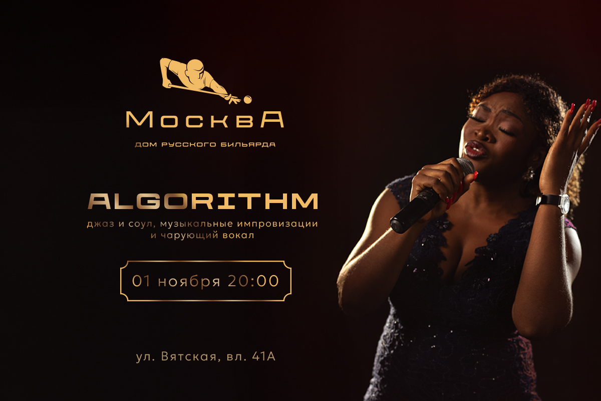 Проект Algorithm, созданный музыкантами из Камеруна, представляет собой захватывающее сочетание ярких импровизаций и глубокого звучания голоса. Основатель и лидер коллектива, Daniel Lepety Ondogo, живущий в России более десяти лет, уже успел стать значимой фигурой отечественной джазовой сцены. Шарм вечеру придаст вокалистка Jeea с мощным голосом и ярким темпераментом.