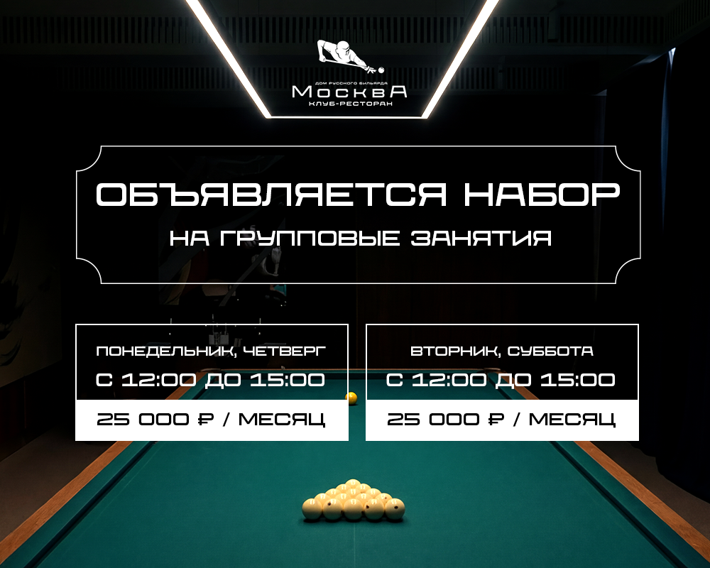 Сообщаем вам, что в Доме русского бильярда объявляется набор на групповые занятия.